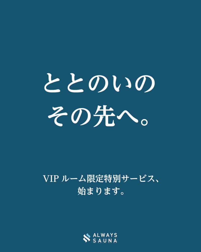 VIPルームのご利用体験を、さらに上質に。ALWAYS SAUNAでは、VIPルーム限定でサービス内容を拡充いたしました。